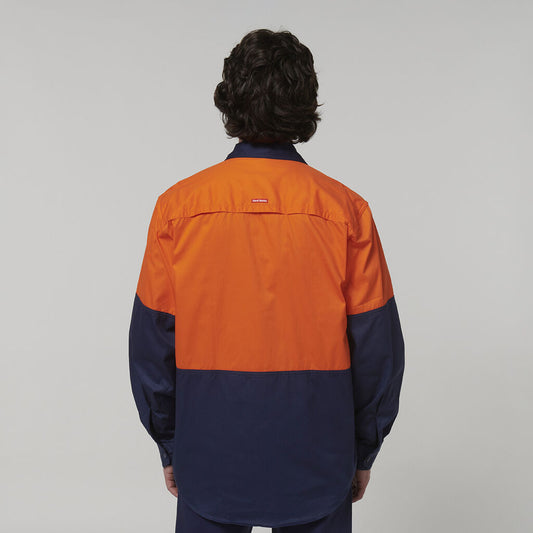 HARD YAKKA CORE HI VIS L/S 2 TONE VENTED COTTON SHIRT